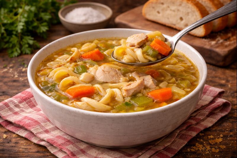 Chicken noodle soup comforts not because it is exciting, but because it is patient. It asks nothing of the person eating it except to rest.